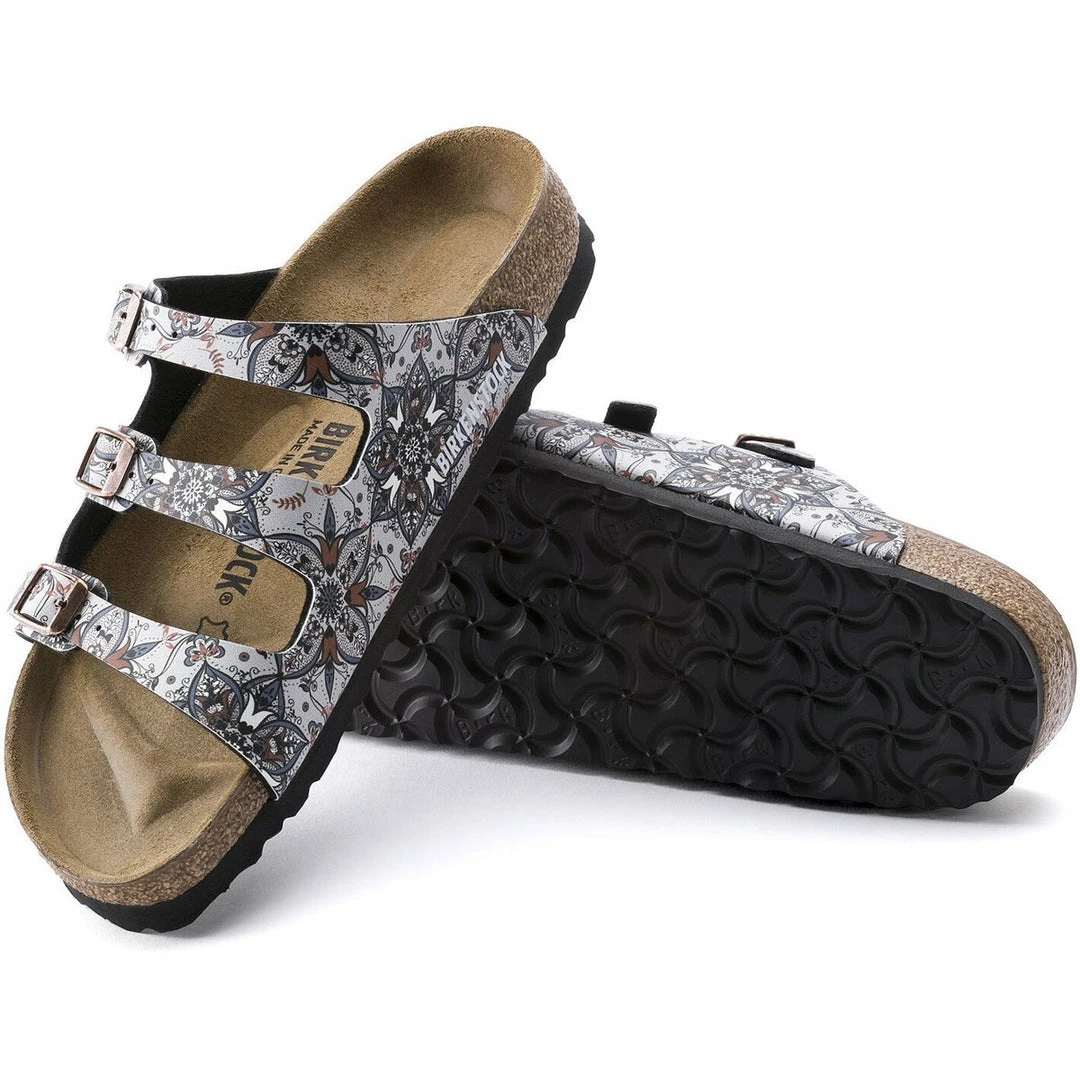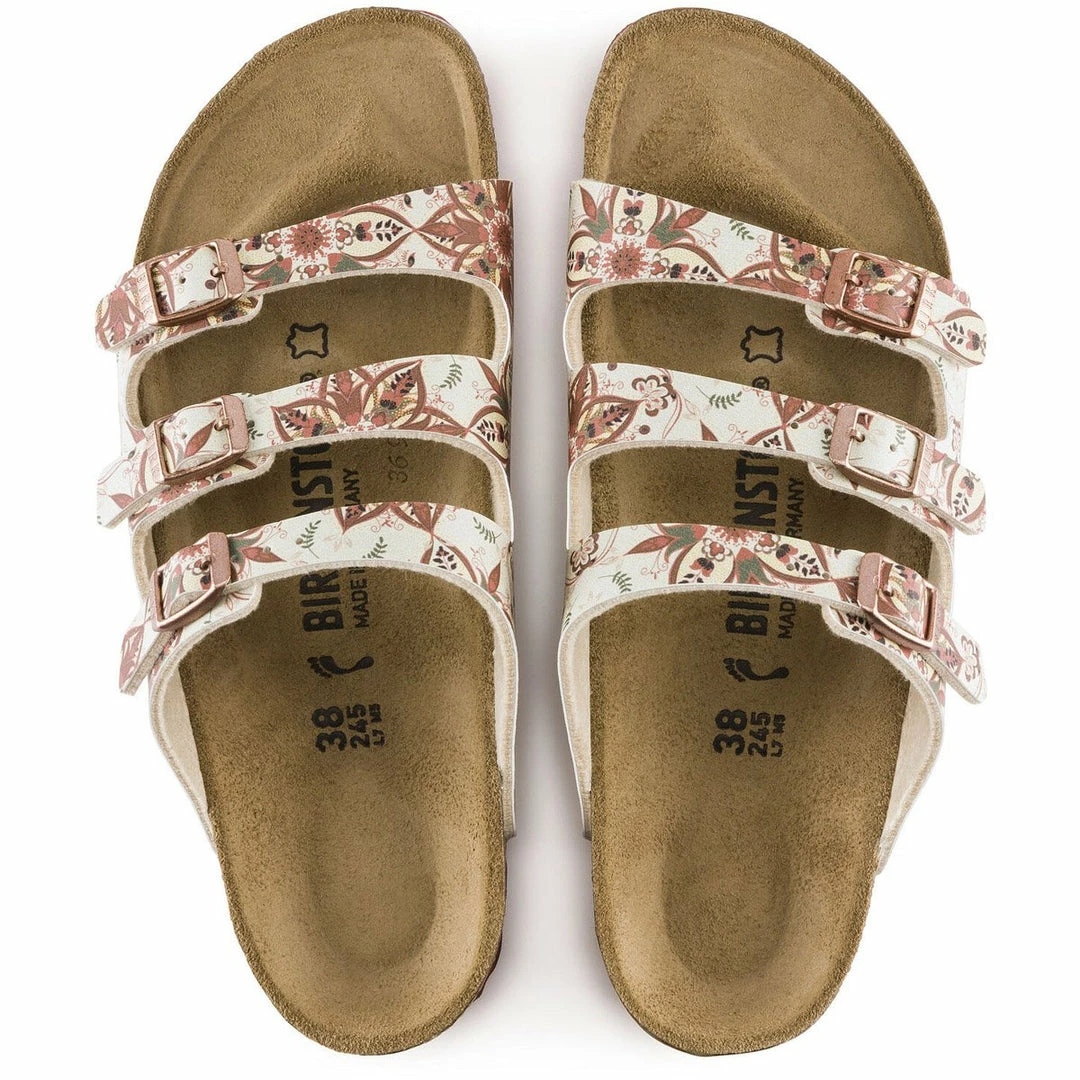 BIRKENSTOCK has given the classic Florida model a new lease on life. Thanks to the three slender straps that can be adjusted, the sandal also offers optimum grip and can be individually adjusted to feet of all shapes. The upper is made of skin-friendly, hard-wearing Birko-Flor.