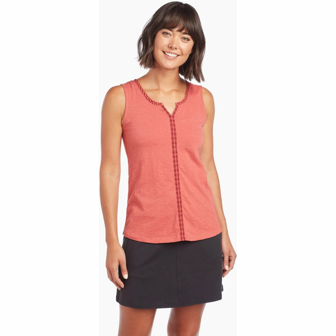 The KÜHL SHAY™ Women’s Tank highlights Wildfibre™ 100% Organic Cotton. Luxuriously soft, durable, and breathable, this superior cotton pampers you with comfort. Custom embroidery and a crossover pleat add stylish details to this must-have summer tank top.
