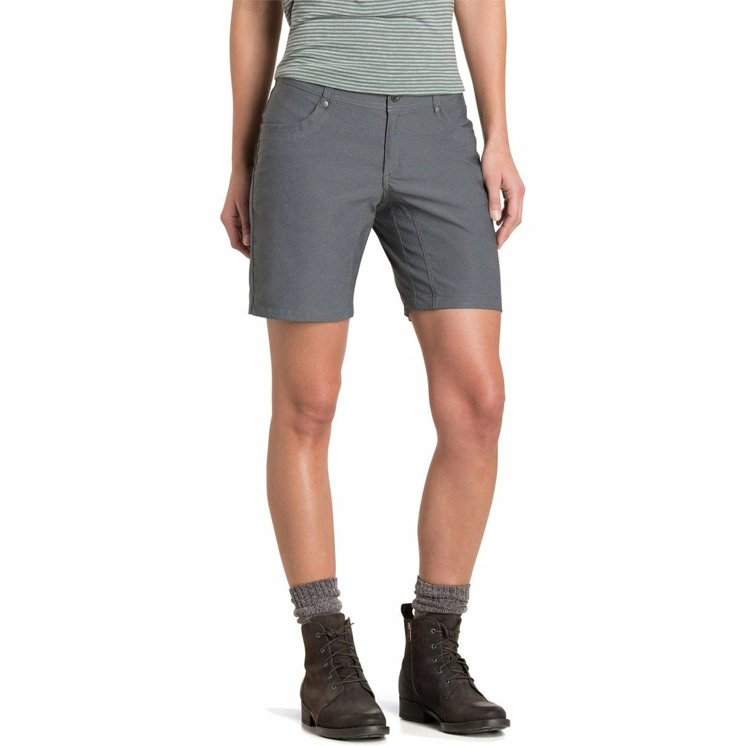 Perfect for outdoor adventures, the stylish TREKR™ Women’s Short 8” is cut from KÜHL’s exclusive and quick drying REKOIL™ fabric. These shorts provide a comforting stretch that rebounds to keep you in form. An 8″ inseam and the KÜHLKURVE™ feminine fit deliver a casual style perfect for the trail or back deck.