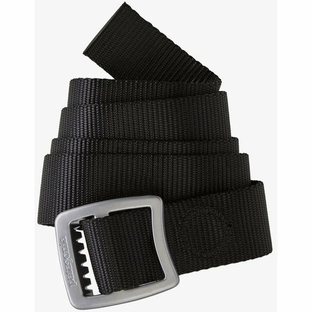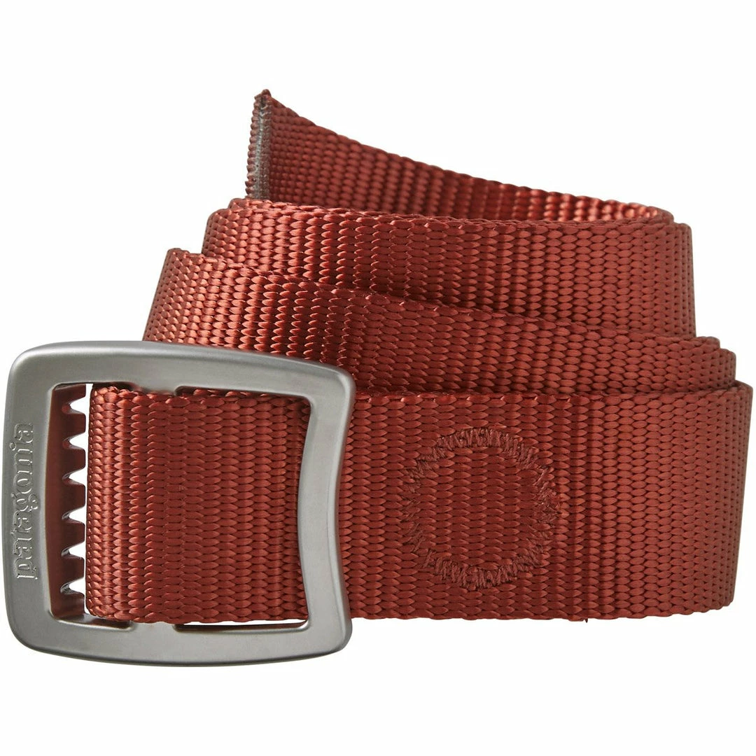 Burly recycled nylon-webbing belt, with anticorrosive aluminum buckle, can be used in a pinch as a lash strap or bottle opener.