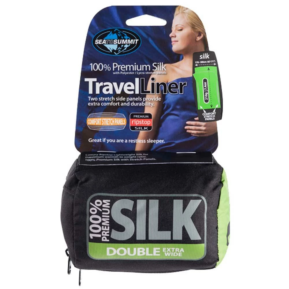 Sea to Summit Premium Silk Travel Liners are made from the strongest, finest ripstop silk available and have added Polyester/Lycra stretch panels along the length of the seams. These stretch panels allow the liner to move with you when you turn, roll and curl up in the night.