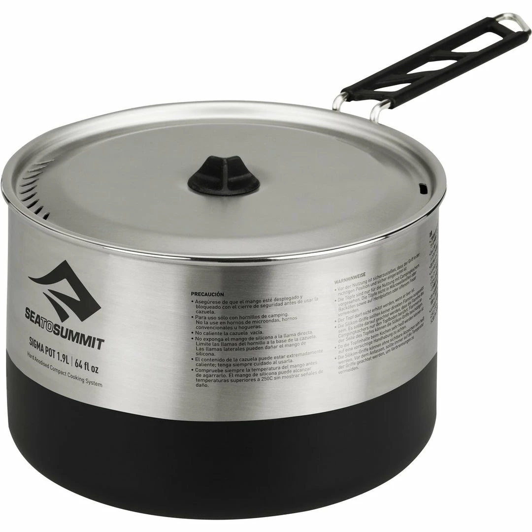 The Sigma Series of Cook Pots brings technical features such as the Pivot-Lock handle (that locks securely into place during use and locks away for transportation), the silicone Lid Keep (to rest the lid on the side of your pot during cooking), and a grippy black base (for better heat absorption) to the realm of stainless steel cookware.